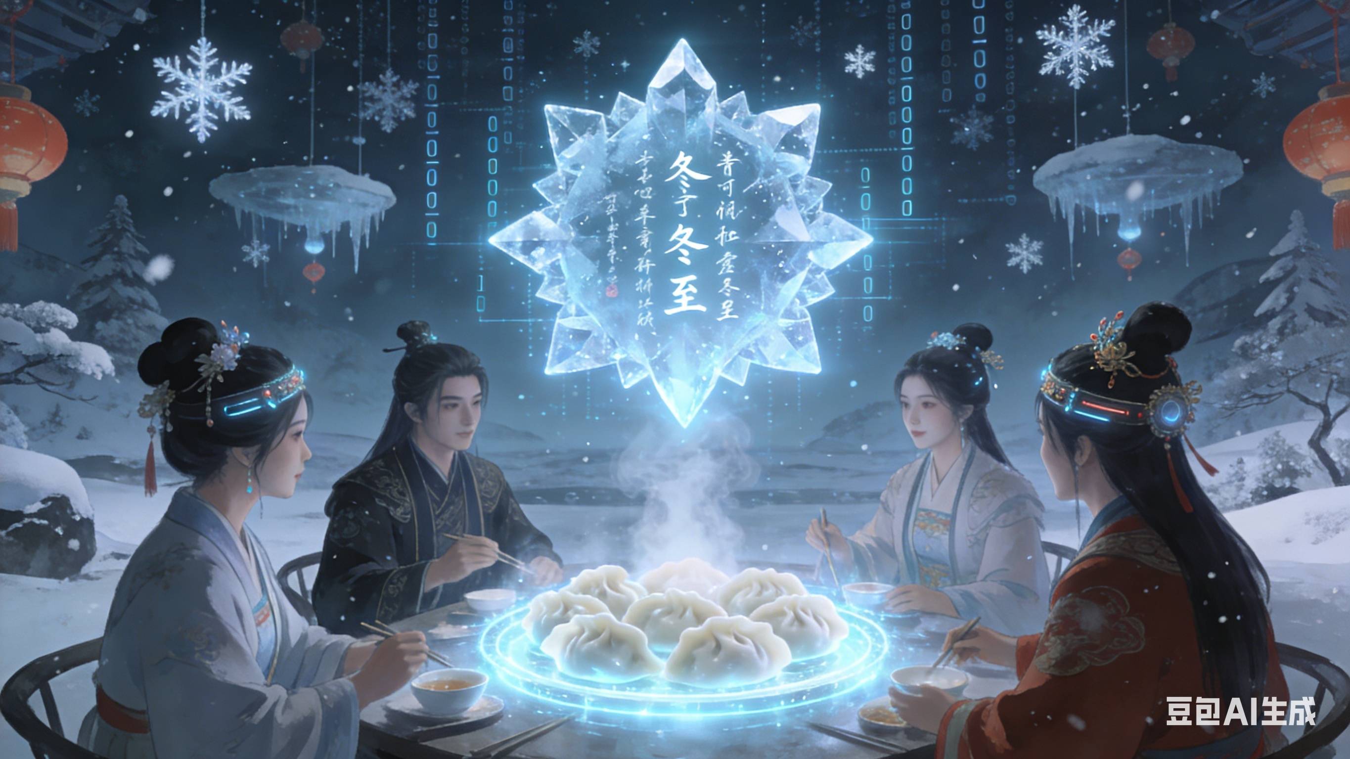 冬至夜,雪境悬在半空。全息饺子冒着量子热气,馋东说念主得很。冰晶屏上,《九九歌》滚来滚去。全球裹着数据流织的领巾围坐。雪花是 0 和 1 拼的,却带着水墨留白的软乎劲儿。