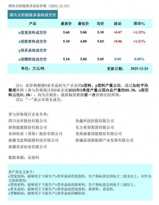 本周国内多晶硅市集价钱小幅上升,主流签单企业数目环比上周小幅增多,订单多为12月份订单,成交价钱较上周上调1-2元/公斤。其余多数企业现在正处于1月订单的密集洽道期,臆测近期将有批量订单落地。本周多晶硅市集逼迫此前三个月的抓稳花式,价钱终了小幅上升,成交量也有所建造,主要能源开首于三方面:第一,为匹配一季度传统淡季需求,硅料企业抓续奉行减产控销战术,臆测1月多晶硅排产出货界限将大幅下调至6-8万吨,有用缓解供应压力;第二,企业减产导致多晶硅单元居品详细老本上升,基于售价掩盖老本的订价机制,硅料价钱随之上调;第三,荆棘游企业均坚毅到保管价钱体系踏实的要害性,幸免连锁负面响应,本周硅料价钱上升也为下流各方法价钱的企稳回升提供了底部撑抓。